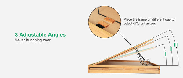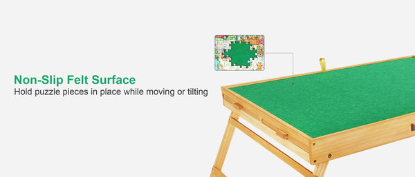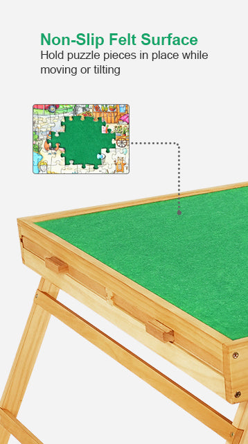 【3 TILTING ANGLES Adjustable】To reduce back and neck pain occurs during puzzling, this jigsaw puzzle table for adults is specially constructed based on Ergonomics, so that it can better provide a comfortable position for puzzle lover.Our puzzle boards with drawers can be adjusted to 3 different degrees to tilt or lay according to your usage.Felt puzzle table top prevent puzzle from falling while tilting.