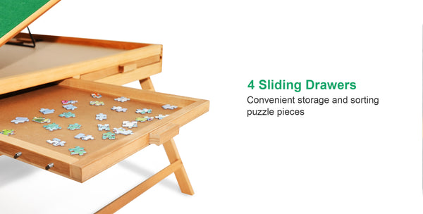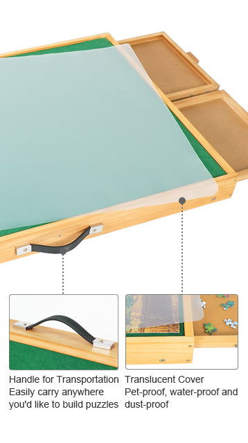 【Ideal Puzzle Gift for Puzzle Enthusiasts】A perfect birthday or holiday gift for adults, teens, seniors or anyone who love puzzles as we do, this encourage quality interaction and strategic stimulation while putting together your favorite jigsaws.Premium sustainable hardwood and good manufacturing also offer a long-lasting natural experience in using.If pain occurs during puzzling bothers you, stress no more! Add a Tilting jigsaw puzzle board with drawers to your cart today!